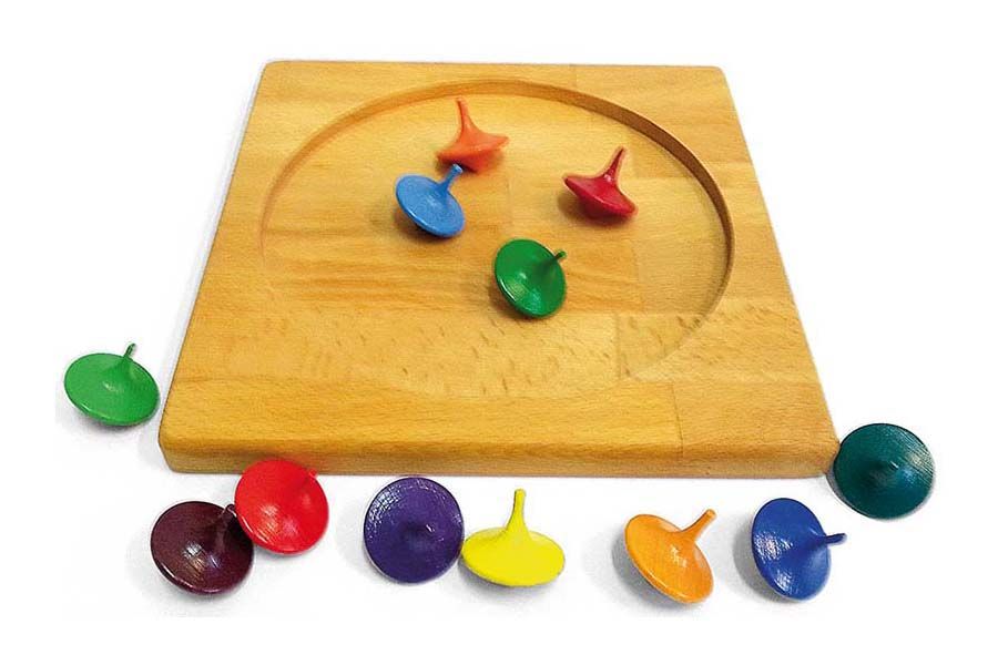 “Chinesischer Glücksknoten“, Maße: 25*25*2 cm, BS-01051 Kreiselbrett mit 10 bunte Holzkreisel, BS-03050 Holzkreisel, 12 Stück sortiert Ø 35 mm. Aus dieser uralten Form entwickelte sich die “Liegende Acht“ der Kinesiologie. Zusammen mit unseren bunten Holzkreiseln ein hervorragendes Motorik-Spiel. Auch für unsere Holzperlen geeignet. Auf der Rückseite ist ein Kreiselteller mit Ø 20 cm. Die Geschicklichkeitsgrade können von einfach bis schwer gesteigert werden.