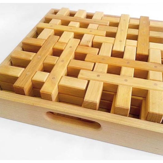 12 Stück, Maße: Klötze: 17,5*17,5*2,5 cm. Kasten: 38*38*9 cm. Die Längs- und Querteile der Gitterklötze sind ineinander gelegt, das ergibt eine gute Stabilität. Die Klötze können in unzähligen Varianten miteinander verzahnt werden und so entstehen Häuser, Schlösser, Burgen. Der stabile Holzkasten ist mit Trageöffnungen versehen. Die ungefärbten Gitterklötze sind aus massivem Buchenholz.